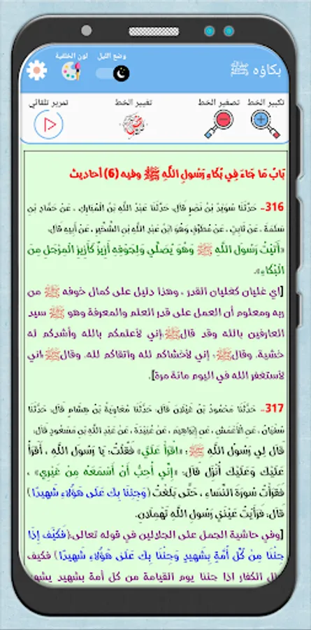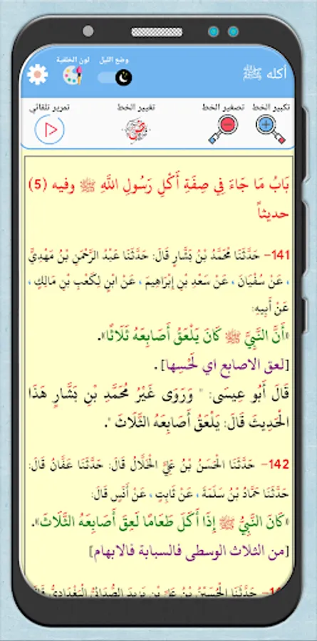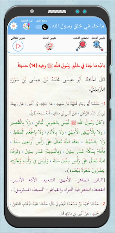 I present before you a copy of this blessed book with a new version in terms of presentation and style. I have reduced the font of the narrators to make it easier for the reader to read the hadith, and I have placed an explanation of the vocabulary and some comments after the end of the hadith in a small font within square brackets [] in order to facilitate access to the explanation and movement between the hadiths, and if the font size is It does not suit you. You can enlarge or reduce the font using the dedicated buttons.