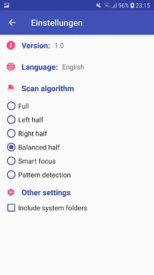 On request, the system folders can be excluded from the scan process (it is activated by default and saves more time when scanning).