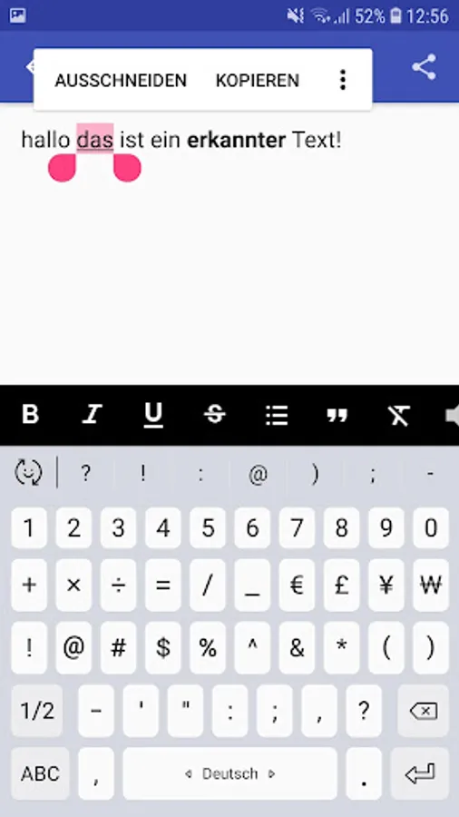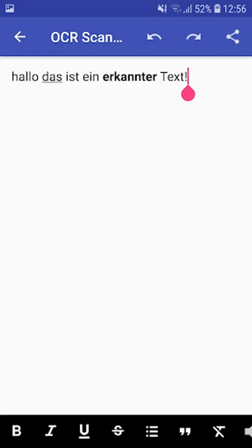 The app also offers the possibility to edit the recognized text with a directional-text editor and share it with others.