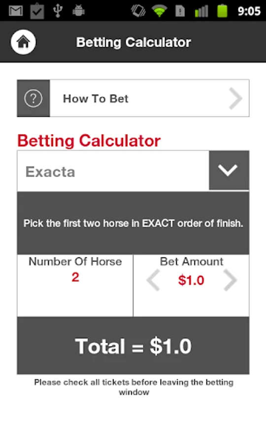 - Use our betting calculator so you know exactly how much those exactas and triple bets cost.