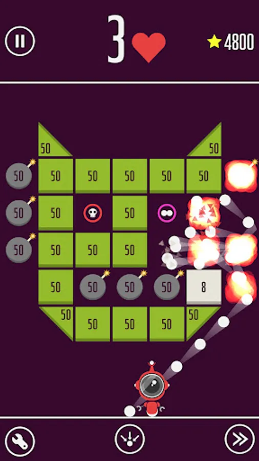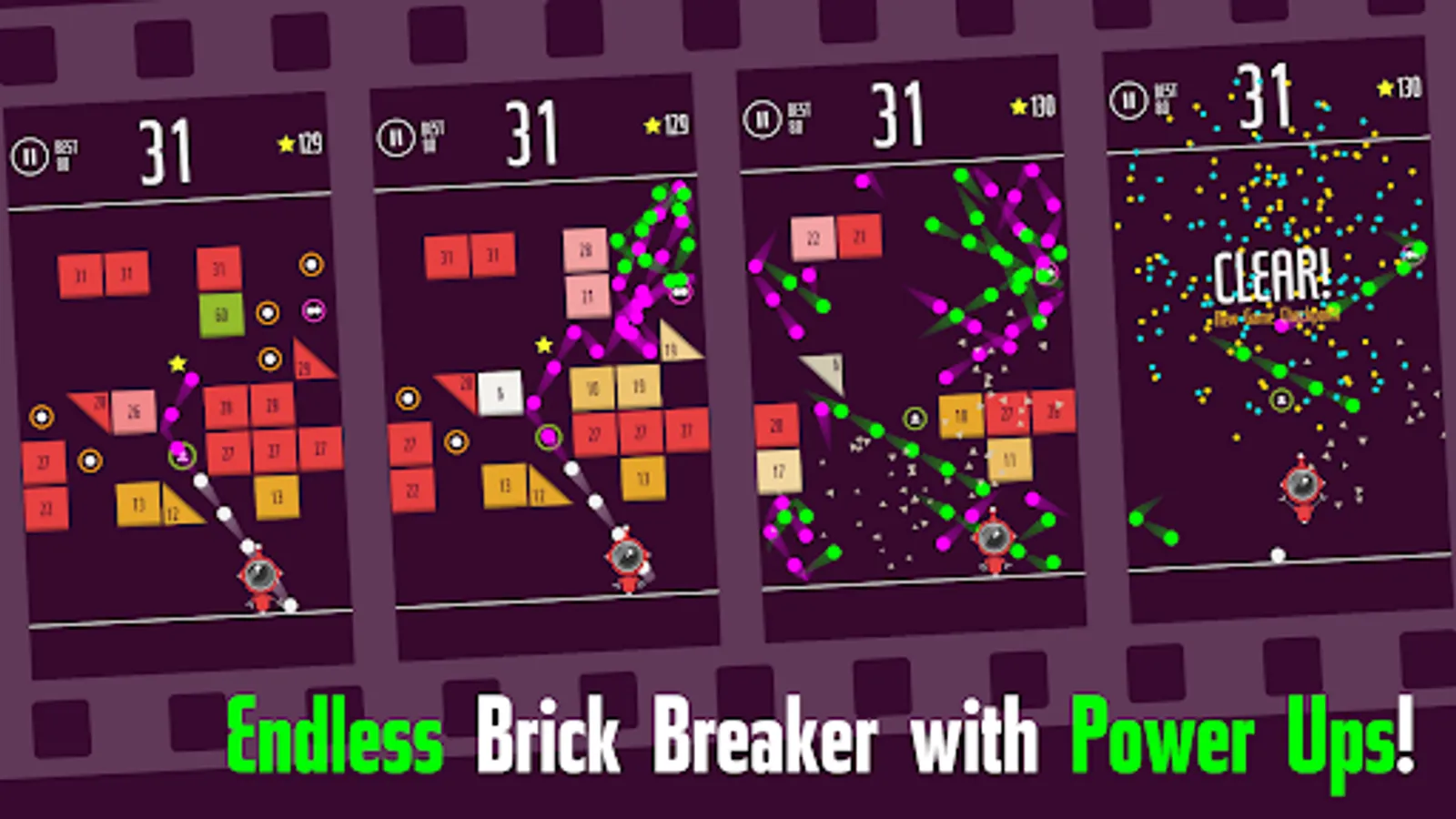 Shoot the balls to break the bricks, much like in classic arkanoid or breakout games but with many more balls. Activate powerful power-ups such as the ball duplicator or the double bouncer and enjoy the satisfying bouncing of hundreds of balls. Break your way through challenging levels like a true brick breaker hero!