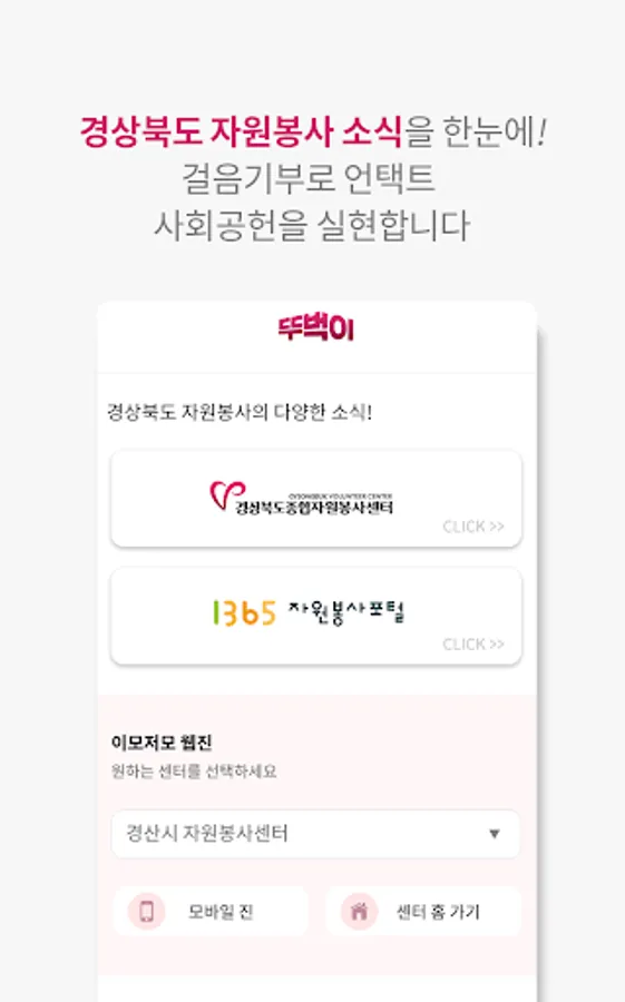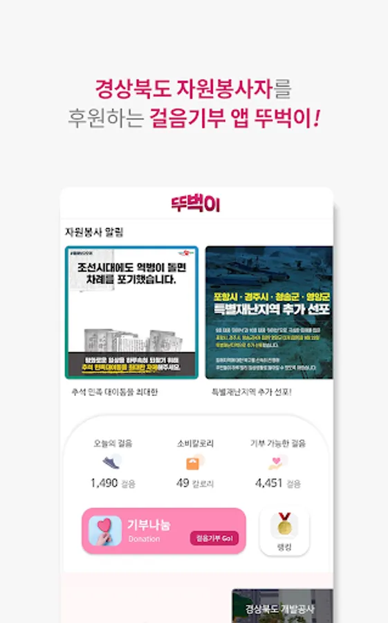 뚜벅이 - 경상북도 자원 봉사자 걸음 기부 플랫폼