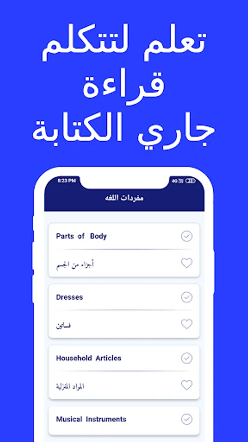 This English Learning application has the more than 2000 words to learn about, learn everyday 20 words, Listen to the paragraph and learn them. Learn English in Arabic is simple and easy to app to help grow the English vocabulary and grammar knowledge. Learn English in Arabic Application helps you to improve communication skills with proper sentences and dialogs. Improve English speaking with conversations.