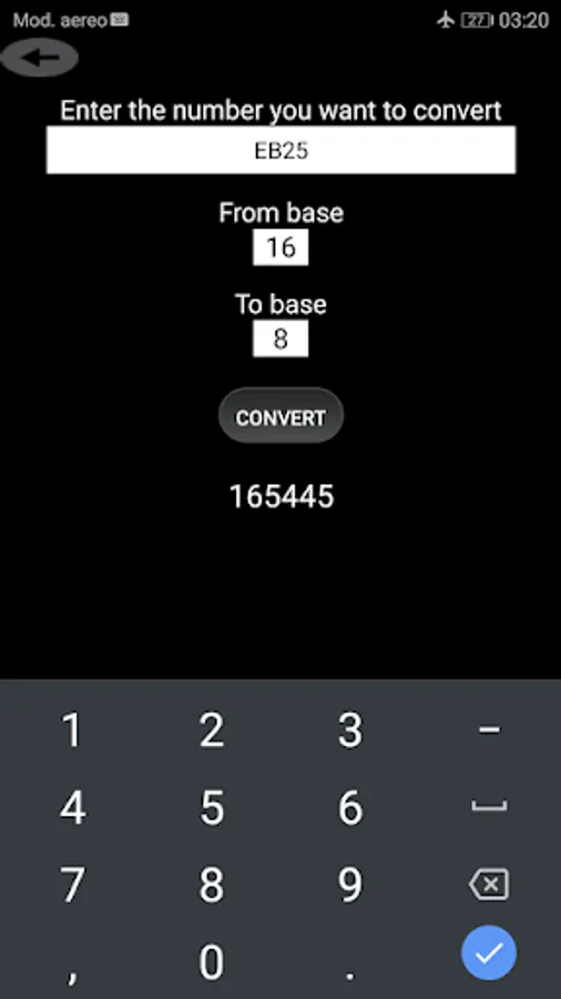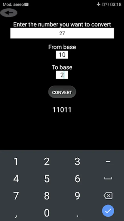 It allows to convert numbers into any base between binary base and hexadecimal base, and viceversa.
