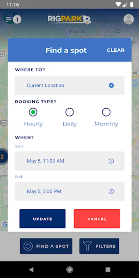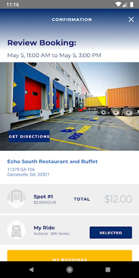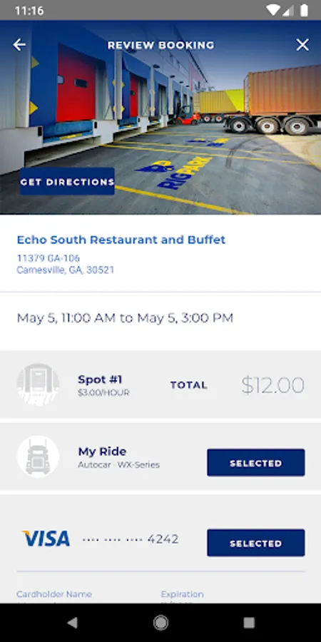 RigPark provides short-term big-rig parking. Our goal is parking when and where you need it, close to where you are going. No more parking and paying cash, or wondering if you are authorized, or cutting your daily drive time short. How does this work? Search based on target address: Locate, Reserve and Pay for short-term tractor-trailer parking. Support - If you have a problem, please submit a question to rigpark-support@rigpark.com