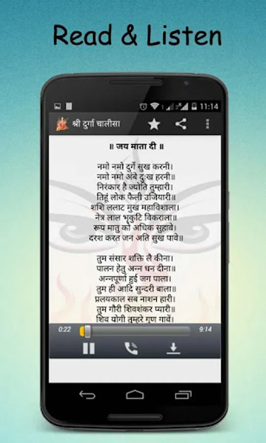 Maa Durga represents the divine feminine power as per the Hindu faith. She is believed to be a destroyer of evil, and brings joy and happiness to her followers.In this app read Durga Chalisa text, and listen to the most melodious and divine Durga Chalisa in mp3 format for free.