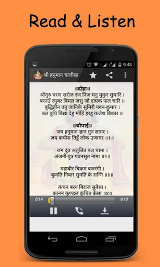 In this app read Chalisa text and listen the most melodious chalisa in the voice of Shri Hari Om Sharan. Most beautiful version of Hanuman Chalisa ever sung.