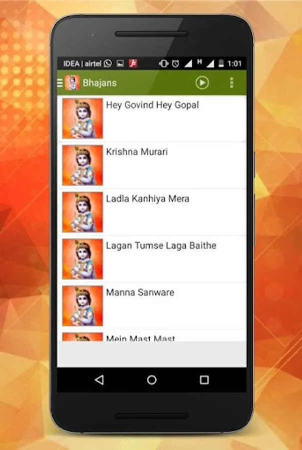 This app devoted to Lord Krishna is a compilation of Krishna Bhajans. Listen to the high quality mp3 bhajans and get blessed by Lord Krishna.