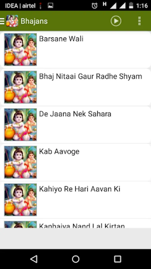 This app devoted to Kanhaiya Nand Lal is a compilation of Krishna Bhajans. Listen to the high quality mp3 bhajans and get blessed by Kanhaiya.