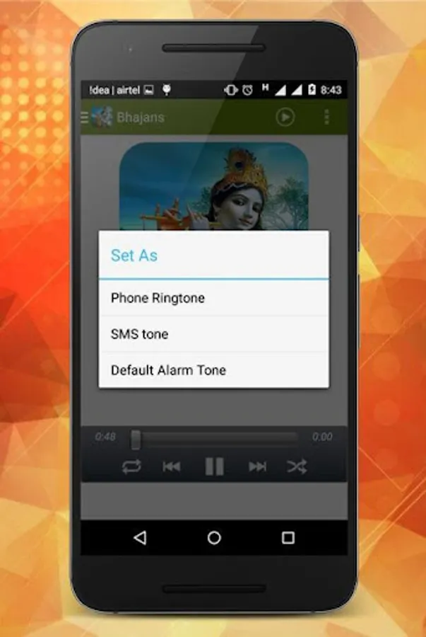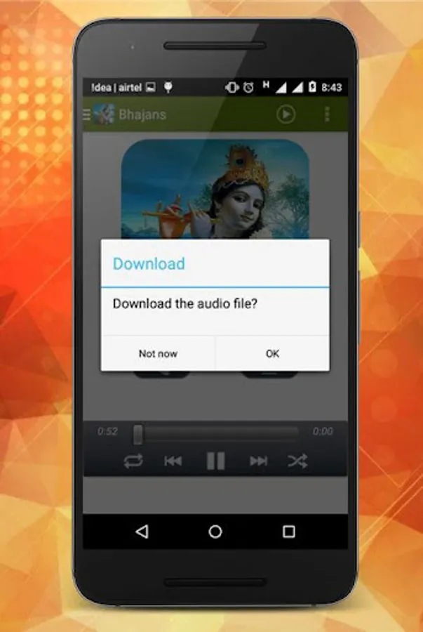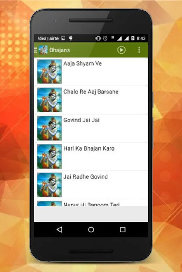 This app devoted to Lord Krishna is a compilation of Krishna Bhajans. Listen to the high quality mp3 bhajans and get blessed by Lord Krishna.