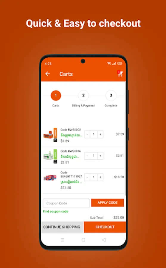 You’ll receive your order for less than 30mn within the Phnom Penh city. No first payment required! You can choose to pay after you get the products.
