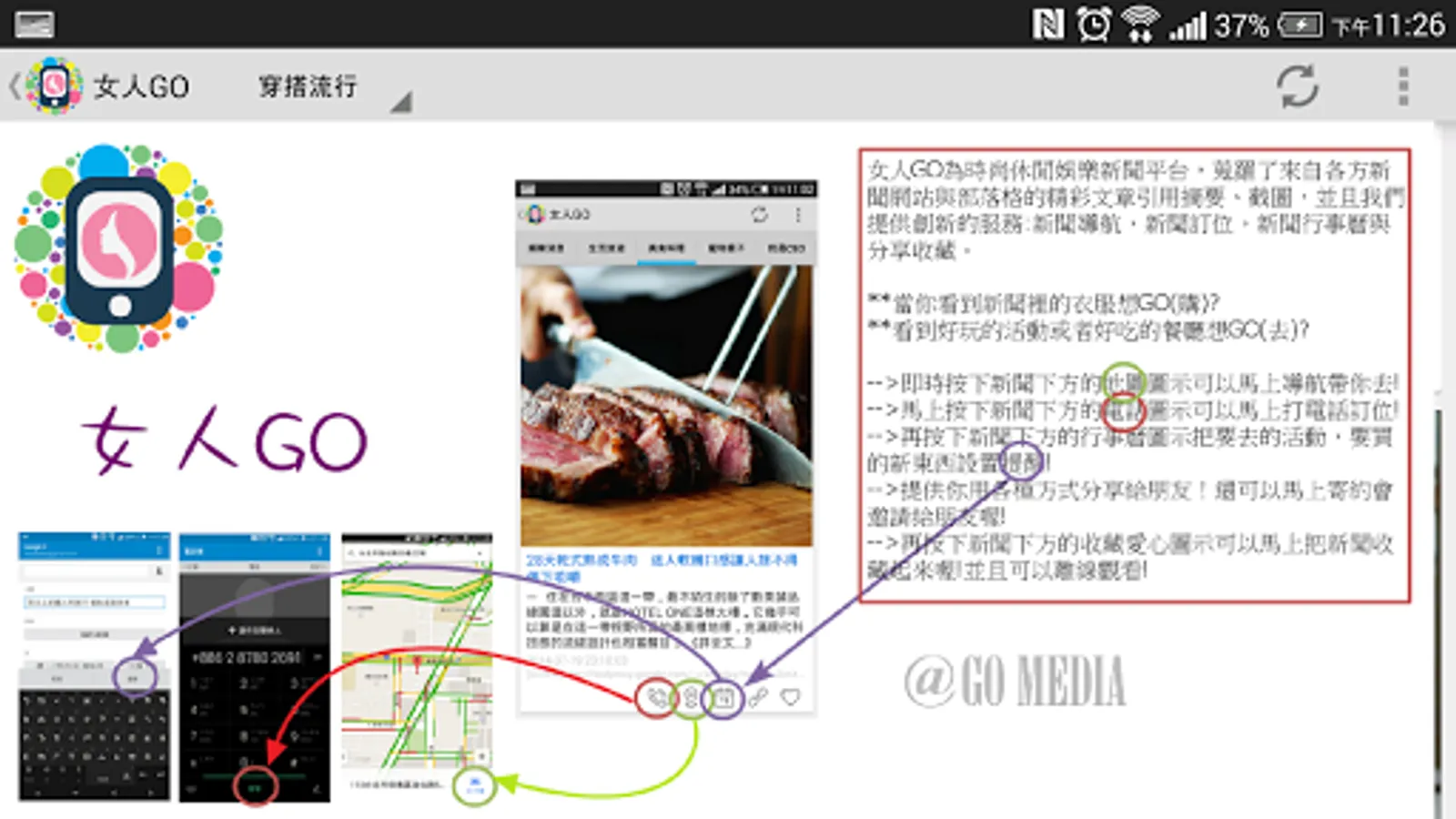 女人GO為時尚休閒娛樂APP,編輯群精心挑選了來自各方新聞網站與部落格的精彩影片與圖文引用,並且我們提供創新的服務:影音串流,新聞導航,新聞訂位,新聞行事曆與分享收藏。