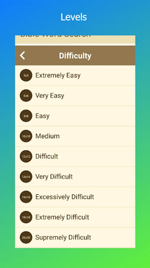 Waiting for someone? or on the way home? feel bored and want to play some games with your friends?want to know more about bible? Bible Word Search is the game for you! You will get an enjoyment by finding all the hidden bible words vertically,horizontally,and even diagonally. The game has 9 levels of difficulty from Extremely Easy to Supremely Difficult and you can choose them freely. Try the 'Time Limited' mode for those of you who like challenges!