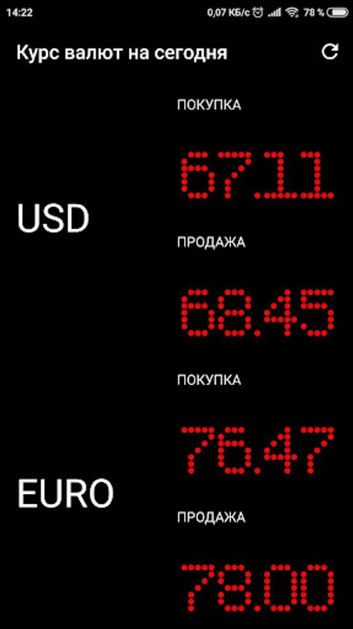 Scoreboard with currency rates for today.