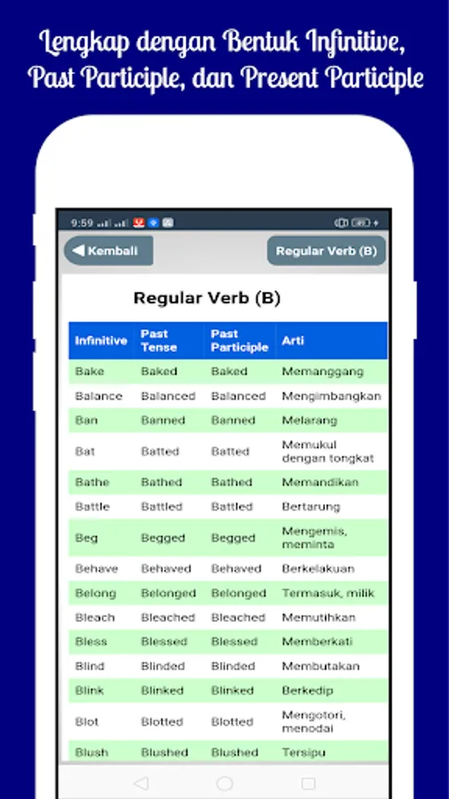 So, what are you waiting for? Just download this app now! And, get the verb 1 2 3 of English regular and irregular in your mobile phone.