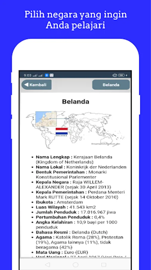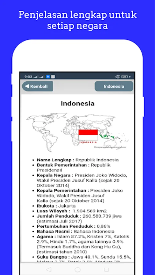 And there is much more information that you can get about the profiles of countries in the world in this one application, so hurry up and download a list of 196 countries in this application to broaden your horizons. Hopefully this application can benefit you. thanks.