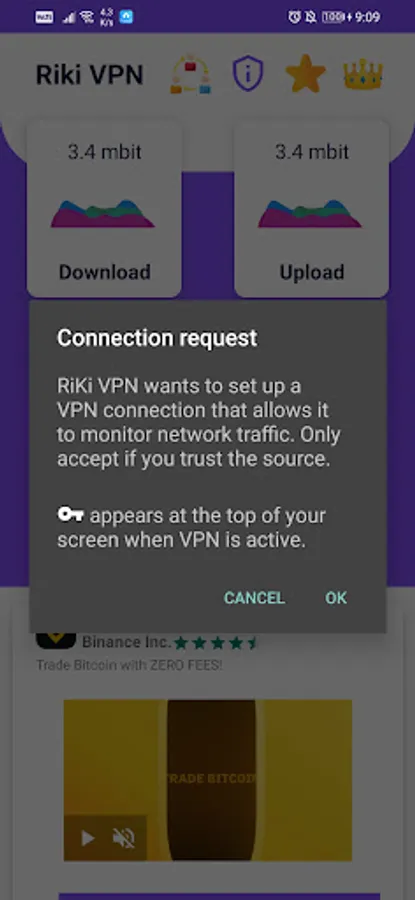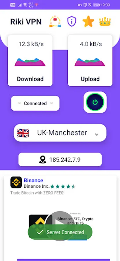 Riki VPN is a lightning-fast app provide free VPN service. Not need any configuration, just simply click one button, you can access the Internet securely and anonymously.