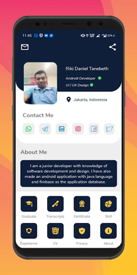 Application profile as a personal application that contains personal data from TANABETH Labs developers in the form of contacts who can be contacted for certain purposes