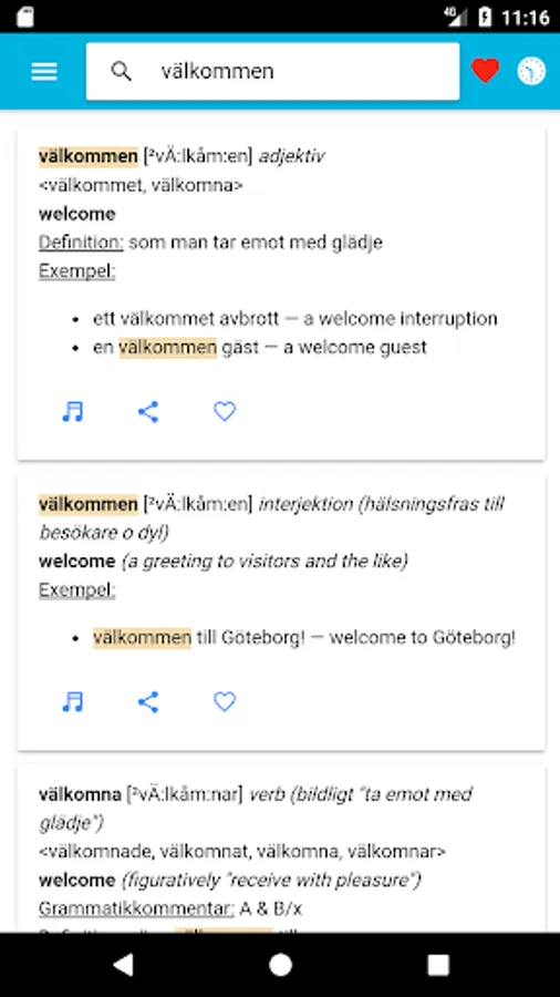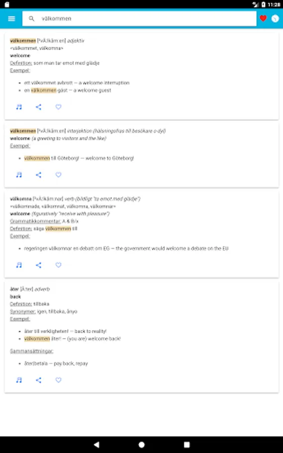 Swedish dictionary based on the Folkets lexikon.