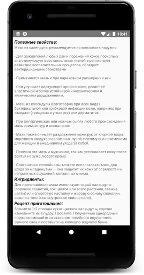 Regularly updated and supplemented database on medicinal plants in your phone contains advice on the collection, preparation and use of medicinal herbs, recipes for ointments, decoctions and tinctures. Information about the time and recommendations for the correct collection and rules for the preparation of medicinal plants, berries and mushrooms. Cosmetics based on natural ingredients that you can collect and prepare yourself.