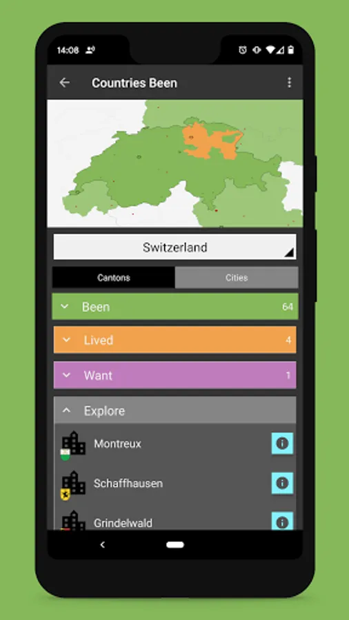 Well, โCountries Beenโ is just for that! It's your customized map of the world, showing all of the countries and cities you've visited, lived-in, and want to visit!