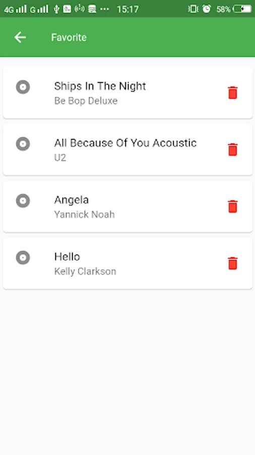* History of viewed songs.