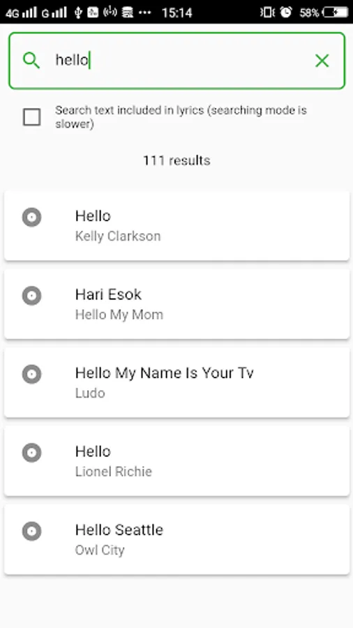 * Free form search songs using artist name, song title, or song lyric