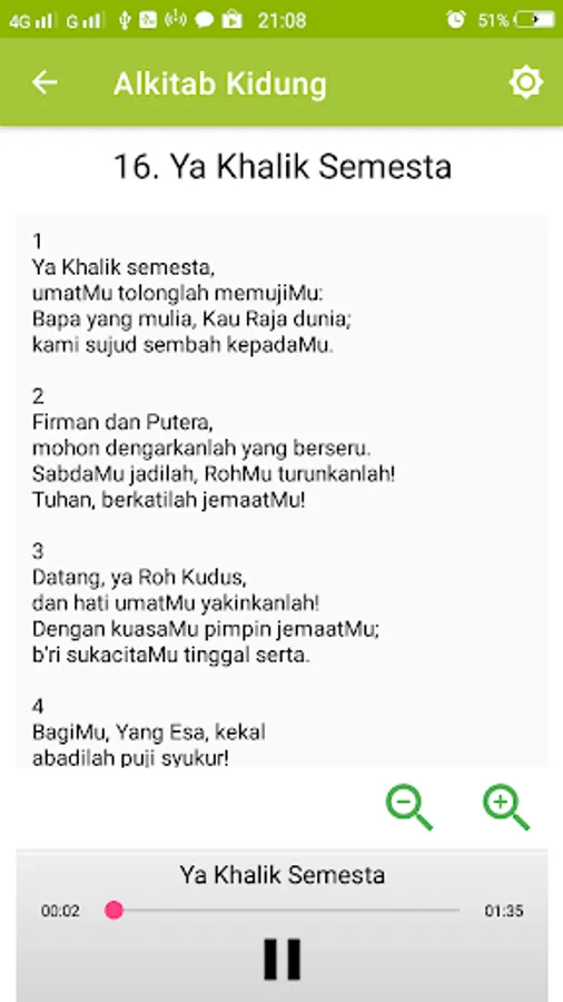 Bible with Kidung Jemaat, Nyanyikanlah Kidung Baru, dan Pelengkap Kidung Jemaat in one application with midi song.