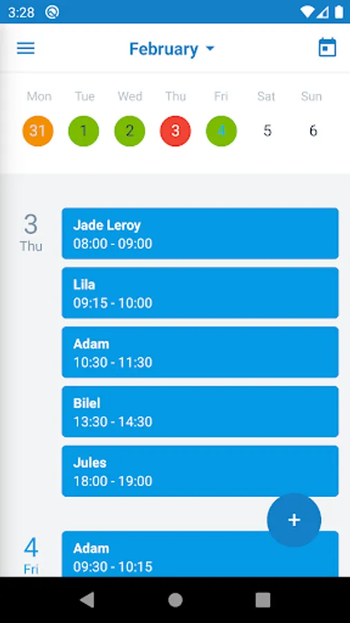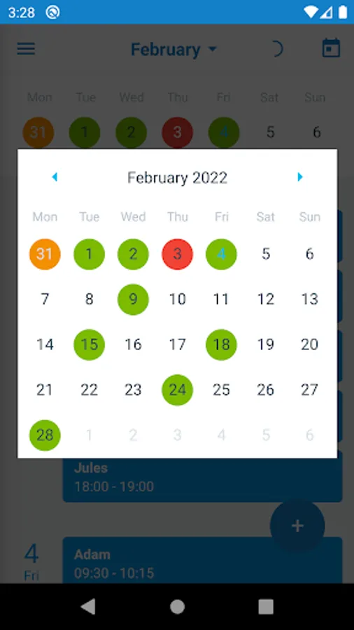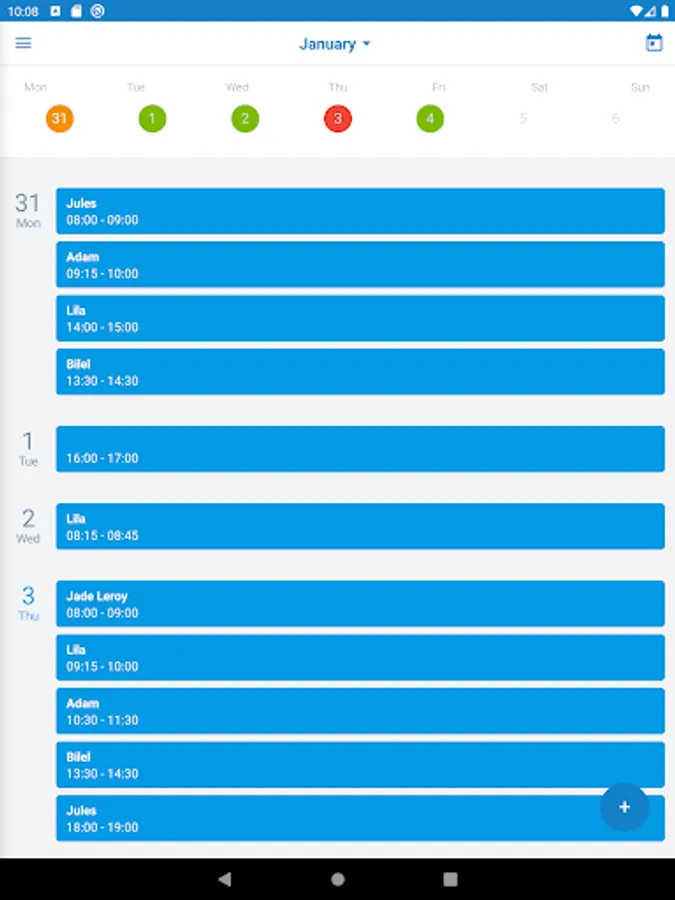 With color codes you can easily and quickly check the number of your appointments per day in order to better manage your time.