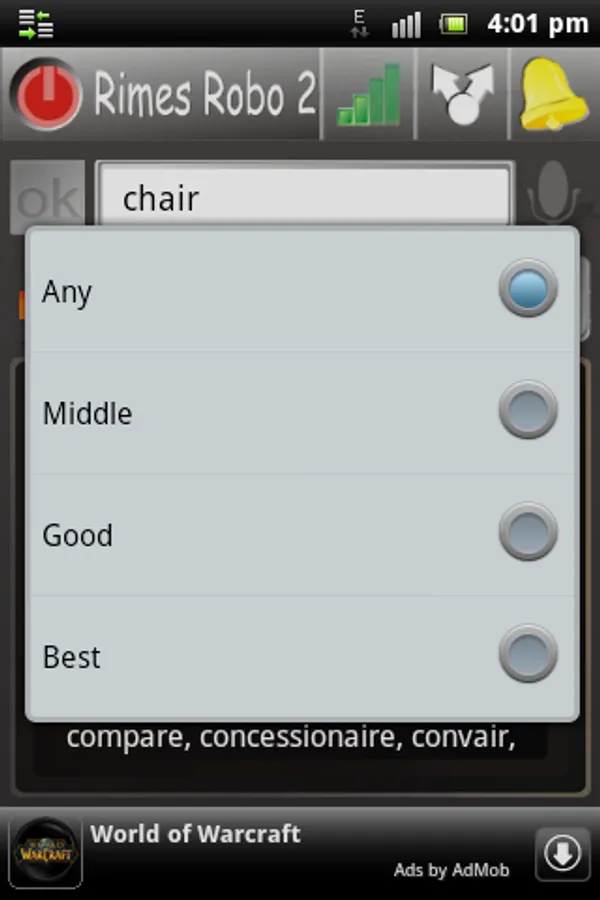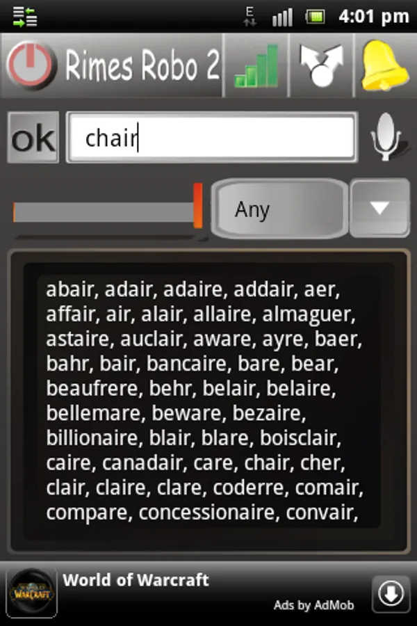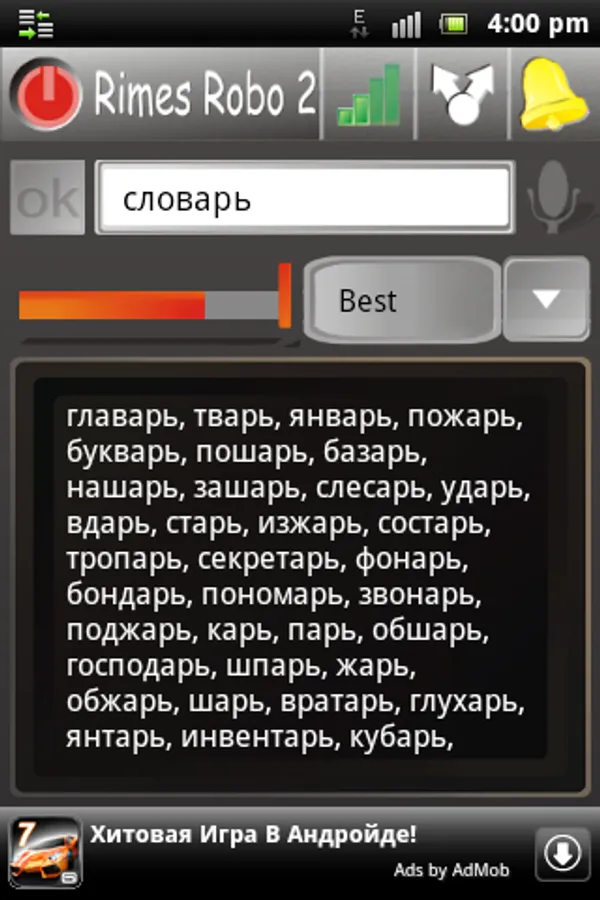 The robotic assistant. Just say the word out loud, for which it is necessary to pick up the rhyme, and the phone will read aloud to you all the results!