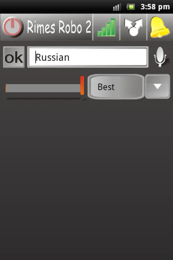 A button in the upper right corner activates the voice option (automatic). If you do not want automatic option, you can every time you want to create a rhyme, to press the button with the microphone.