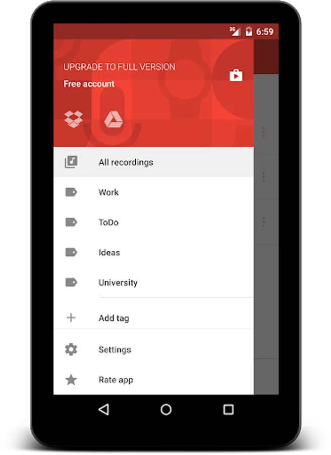 · Manage audio recordings (share, delete, rename)