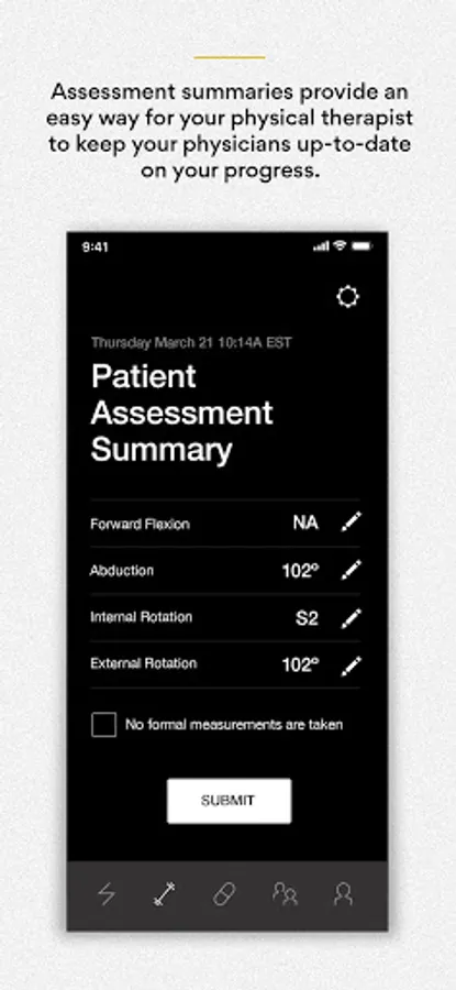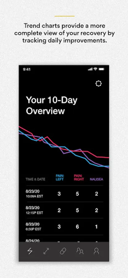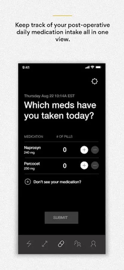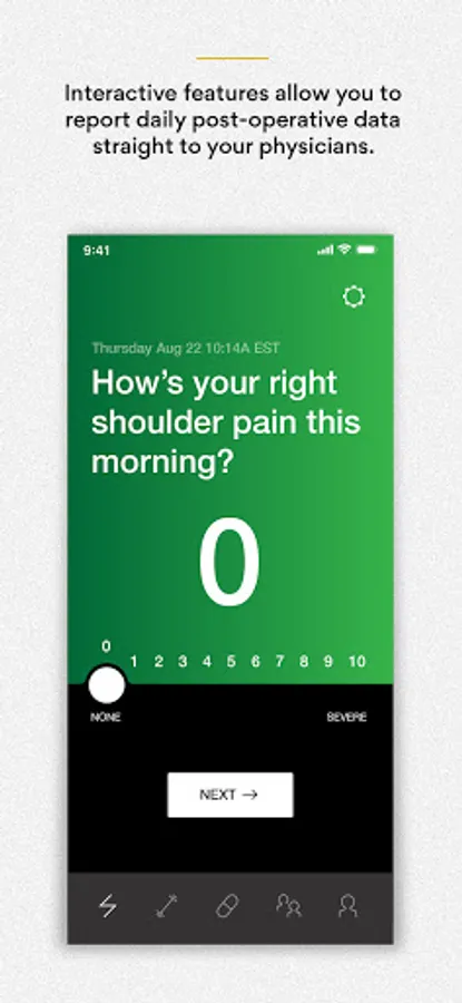 Ortho Patient mobile app enables patients to report post-surgical outcomes and track progress for their surgeon to see. Patients are invited to the app before surgery and report pain, nausea, medication usage, and physical therapy assessments.