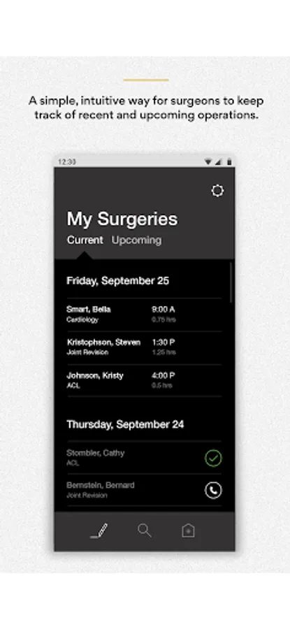 The Ortho Provider app is a surgeon-facing app that is integrated with the Electronic Medical Record and enables providers to document procedure detail and track outcomes with integration to surgical and clinical schedules.