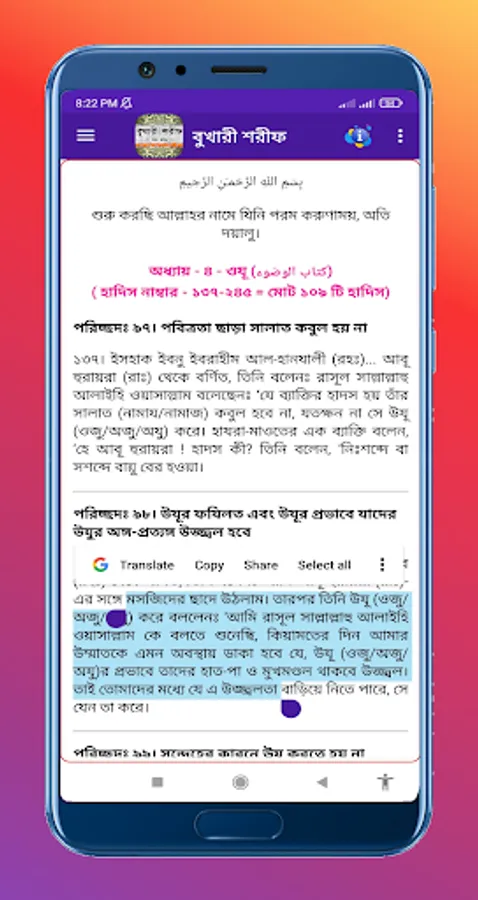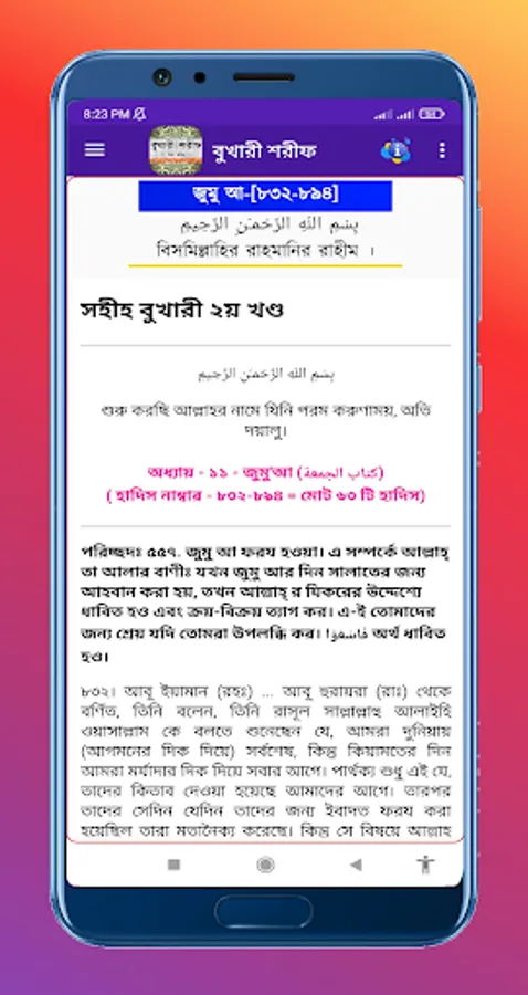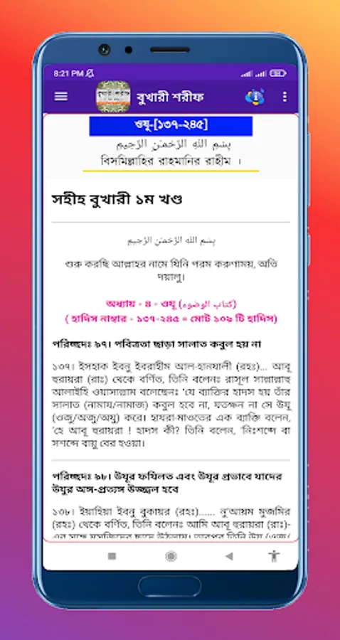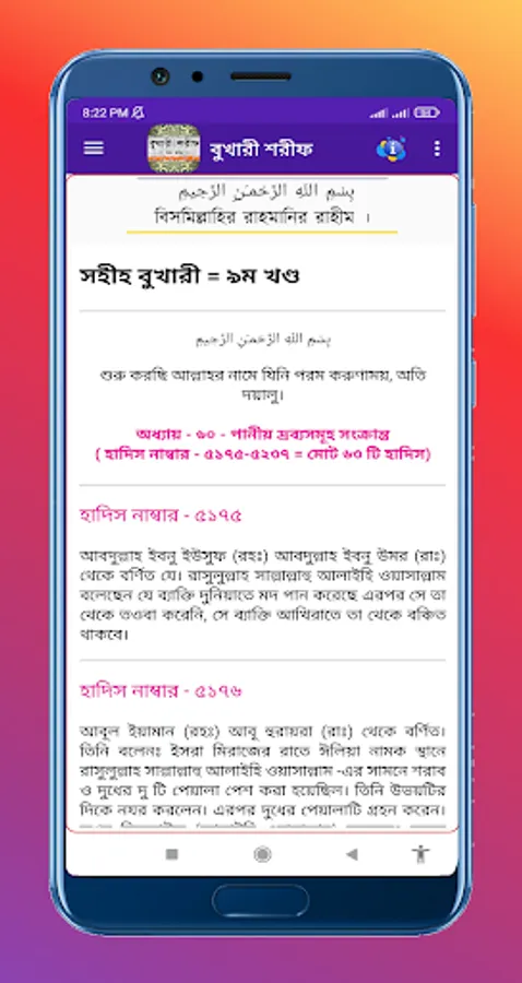 Sahih Bukhari Sharif is the most religious book after Quran Majeed. In this bukhari sharif bangla app you will get full series of bukhari shareef hadees. bukhari sharif arabic to bangla can also usable in offline. In this bukhari sorif bangla you will get 7053 hadith. We are very glad to released this app and grateful to allah subhantala. Every muslim should read bukhari shareef hadees in order to know about the sunnah . By using this hadis bukhari sharif in bangla you can share the hadith with your friends. In this app we have social share option. This bukhari shareef hadees in bengali is for all Bangladeshi muslim people. If you like our bukhari sharif bangla app then rate us with 5 star and share it with your friends.