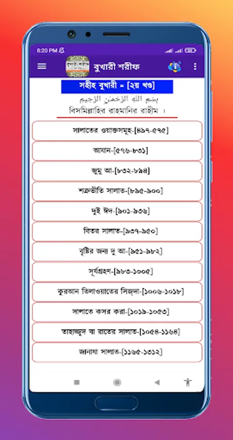 - বুখারী শরীফ সালাত অধ্যায় ও বাংলায় সহীহ হাদিস শরীফ