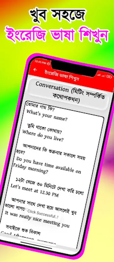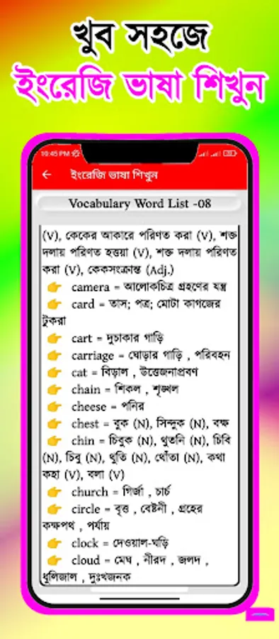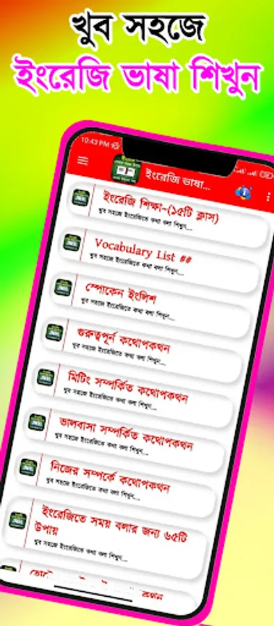 অর্থ সহজ অনুবাদ, স্পোকেন ইংলিশ, ইংরেজিতে কথা বলার সেরা ফর্মুলা, English Vocabulary Word List,ইংরেজিতে কথোপকথন ইত্যাদি সন্নিবেশিত করা হয়েছে। ৪৫ টি ক্লাস করে ৪৫ দিনে ইংরেজি শিক্ষা করে নিজেকে দক্ষ করে তুলুন।