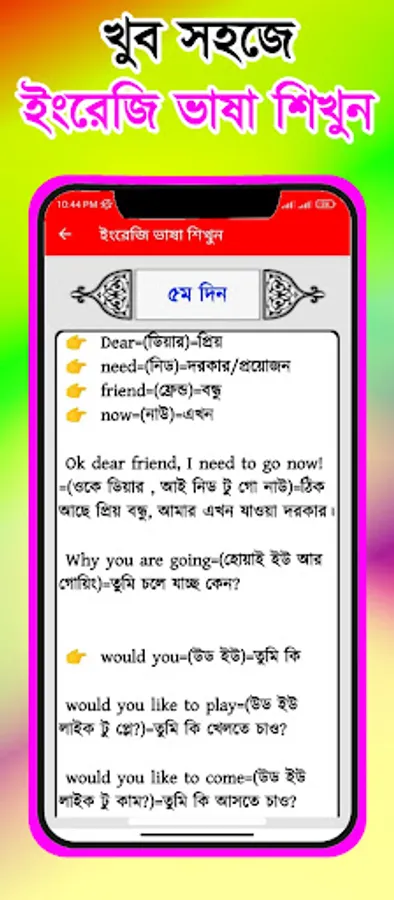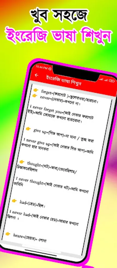 ভালো spoken english with bangla language ইংরেজি শেখার বই পাওয়া খুবই কঠিন। আমাদের এই ’ইংরেজি ভাষা শিক্ষা’ অ্যাপটিতে সকল দিকে সমান গুরুত্ব দিয়ে বাংলা থেকে ইংলিশ অনুবাদ, ইংলিশ থেকে বাংলা উচ্চারন, বাংলা ভাষায় ইংরেজি শেখা ও