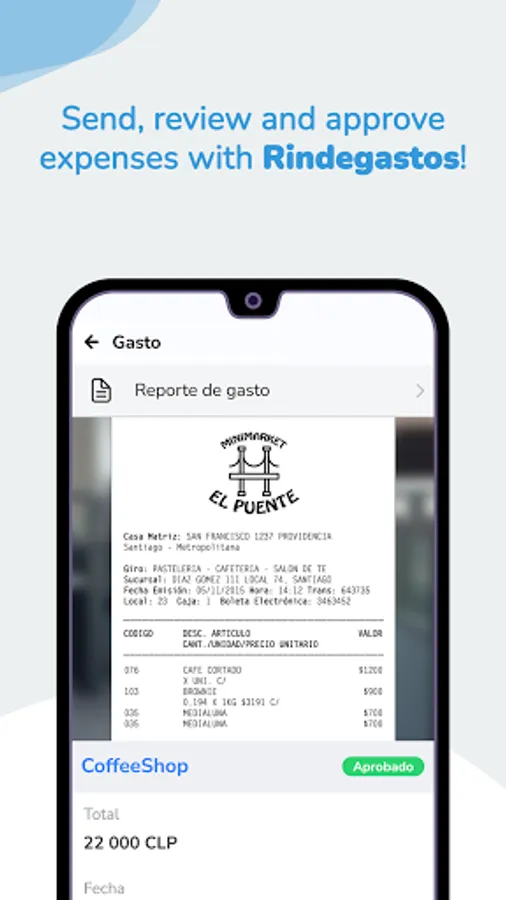 Rindegastos is a cross-platform application that allows you to simplify and automate the entire expense reporting process, with just the click of a button. It's fast, easy and all the paperwork just turns into a memory of the past.
