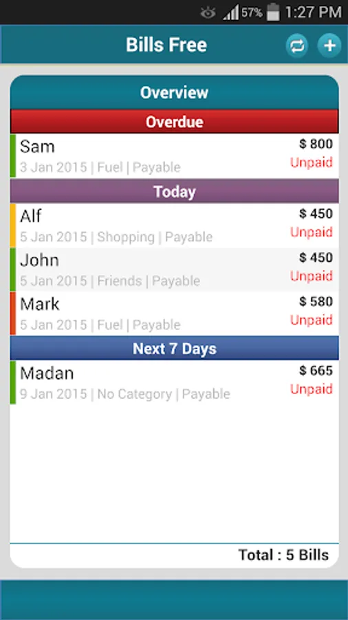 - Widget showing no. of Overdue, Today,Next 7 days Bills