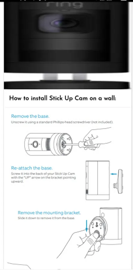 4. Place on a flat surface or mount to a wall with the versatile mounting bracket. Add-on the Mount for Stick Up Cam (sold separately) for ceiling mount.