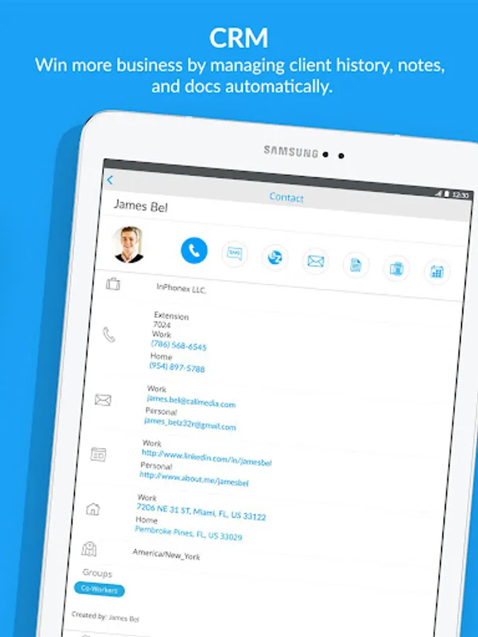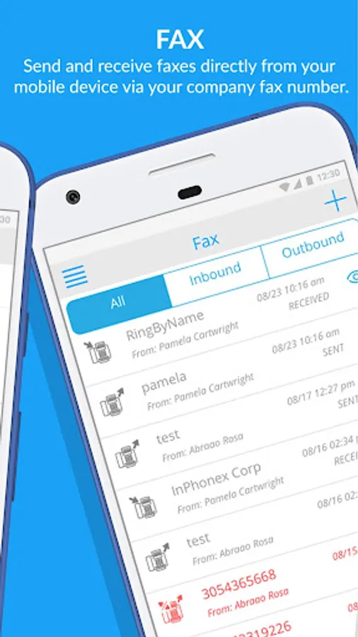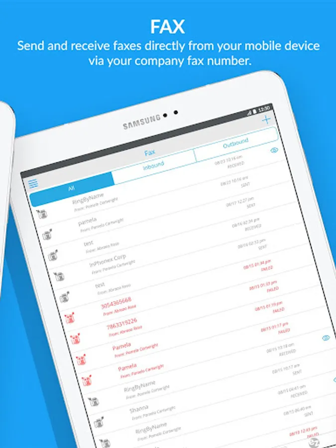 - Show your RingByName business number as your Caller ID when you call out from the app