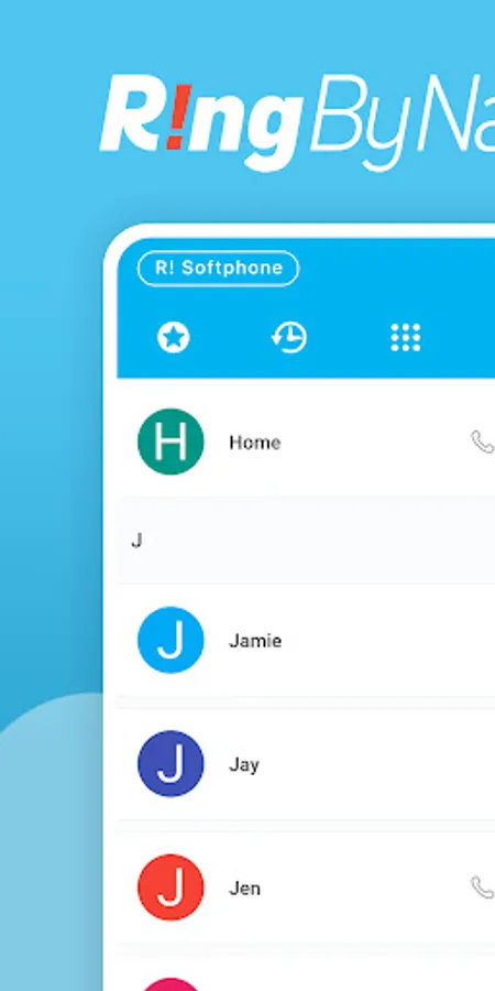 RingByName's mobile softphone allows users to connect to their business phone system from any mobile device. This softphone allows you to make and receive phone calls from your device as though you are in the office with access to all standard business phone features, making you reachable wherever you are.