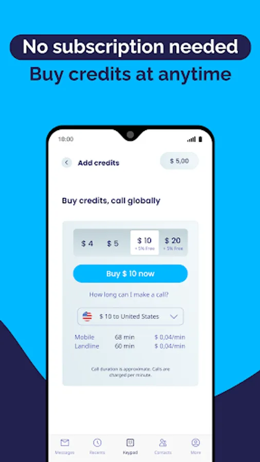• No subscription required for international calling – make calls instantly.