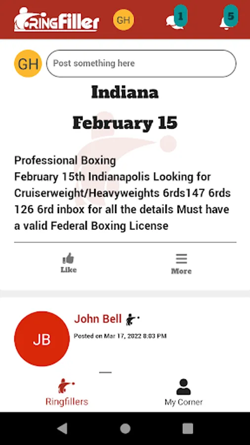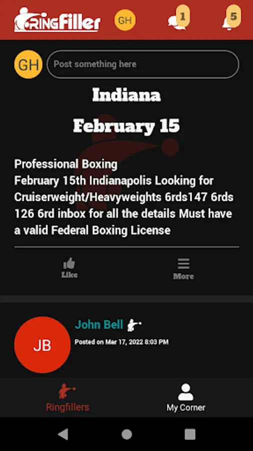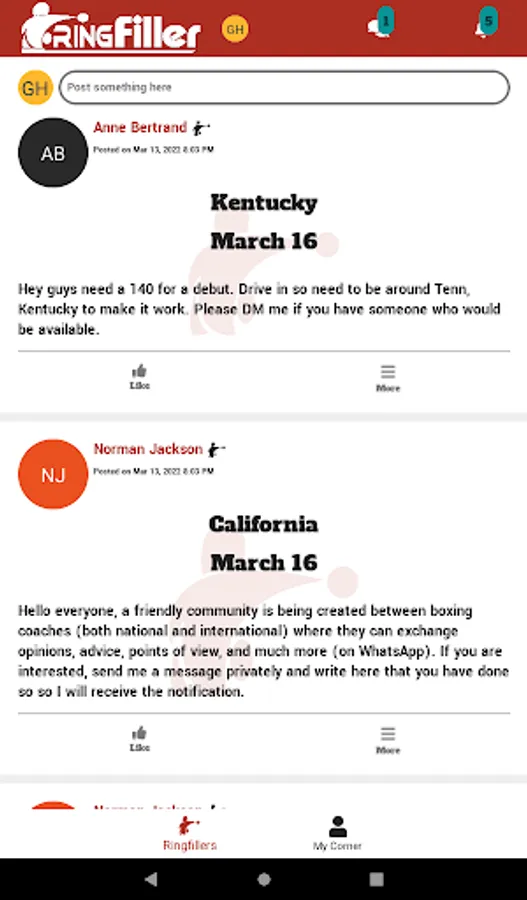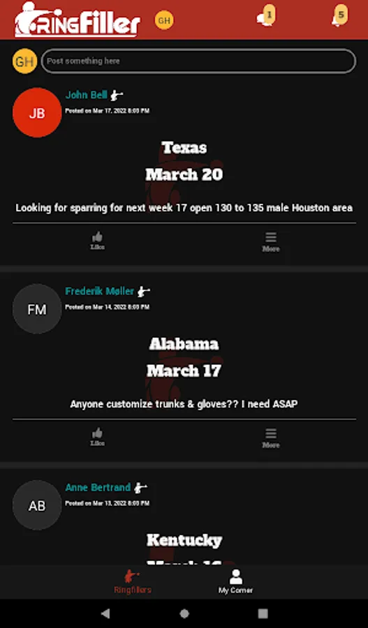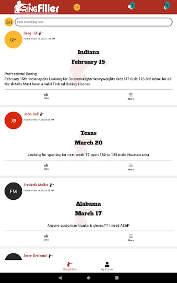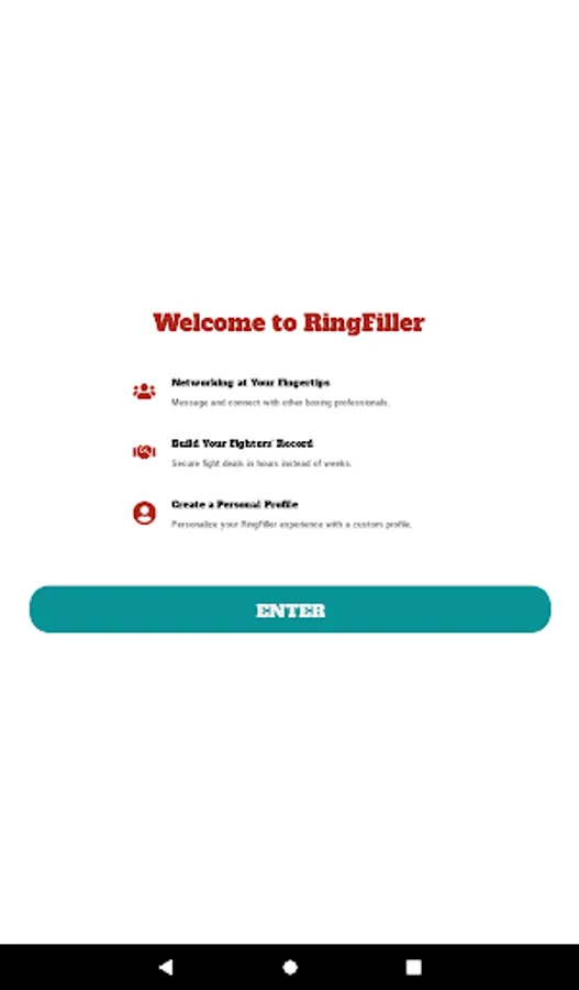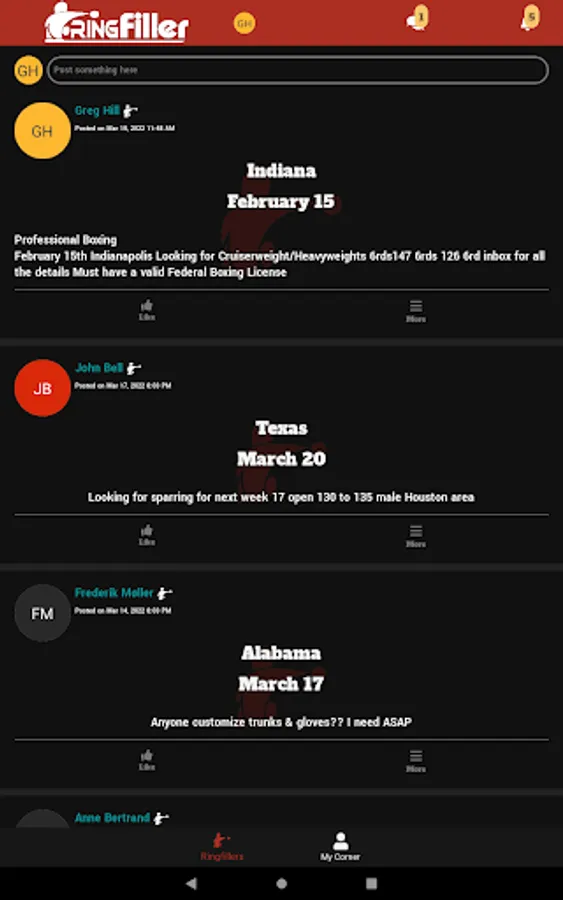 RingFiller is for professional and amateur boxers, managers, and trainers looking for fights and sparring opportunities, as well as matchmakers and promoters searching for boxers for upcoming shows within the US.
