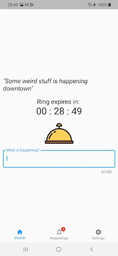 This app is purely for entertainment. All you have to do is to write a message and ring. Tell everyone what is happening right now