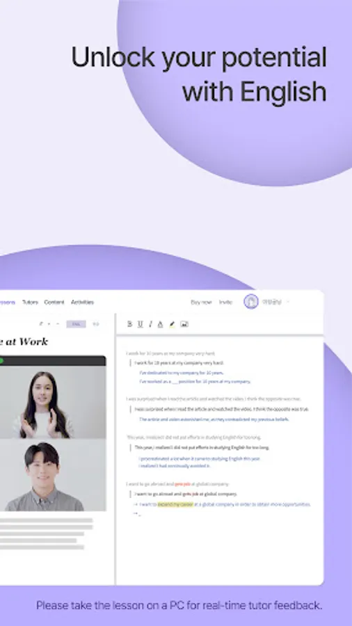 There is Google Doc on the lesson screen where my tutor will teach and correct my mistakes in English in real-time.