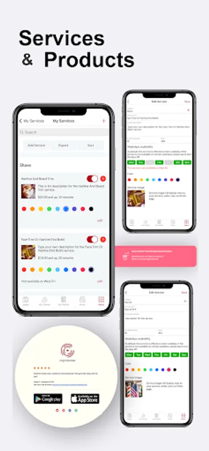 5. Service Management: Present your services with pictures and descriptions, and set availability by day.