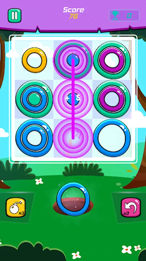 * Arrange and stack the color rings on the vertically, horizontally and diagonal lines.