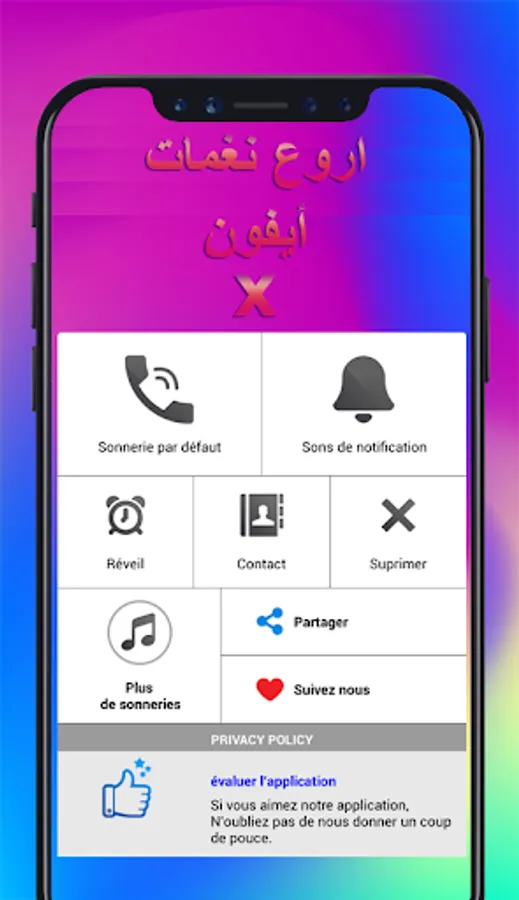 After the launch of the wonderful iPhone X phone, many admired its design and features and many things that came with the phone, but there are those who liked the songs of the iPhone X phone and wished it to be a song from the phone's songs in his Android phone, today with this application we achieve this matter by downloading the application You can choose your favorite song and put it on your phone in an easy and wonderful way